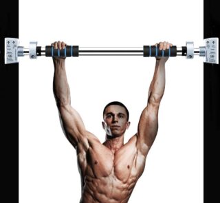 StrongFitt Pull Up Bar, Chin Up Bar for Doorway No Screws, Upper Body Workout Bar with Safety Locking Catch, Heavy Duty Home Fitness Door Exercise Bar, Adjustable 28.5''-36'' Width