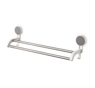 Cetomo Plastic Adhesive Soap Dish with Inner Removable Self-Draining Container and Towel Rack for Bathroom Bathtub Sink Kitchen Washbasin, No Drilling Wall Mounted Detachable, White